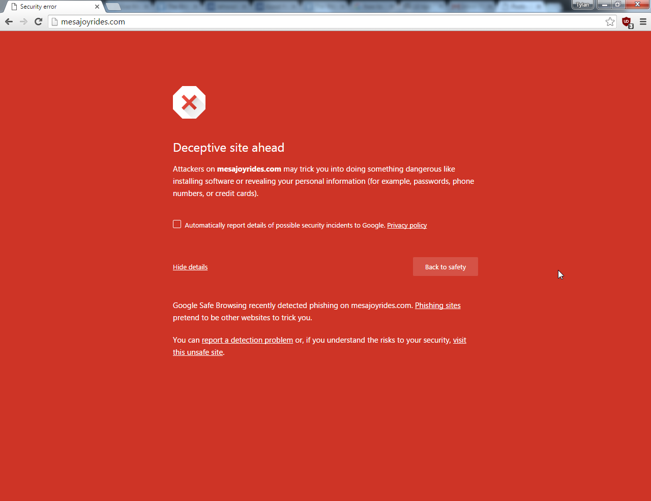 I took the time to report the site to this page: Google Safe Browsing: Report a Malware Page. I also looked into who was the domain registrar. I reported the site to GoDaddy as well. I’m sure I wasn’t the only person to report this site.